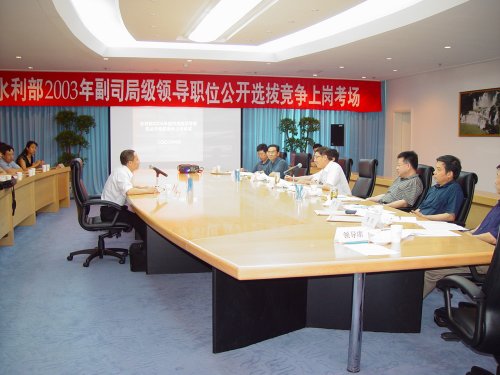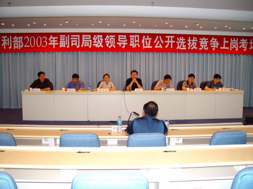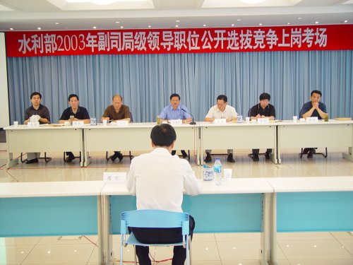 據(jù)悉,6月23日筆試考已順利結(jié)束。根據(jù)《水利部2003年副司局級領(lǐng)導(dǎo)職位公開選拔競爭上崗工作實(shí)施方案》的規(guī)定,本次所有參加公開選拔競爭上崗筆試的人員,直接參加面試。面試共分5個考場:
