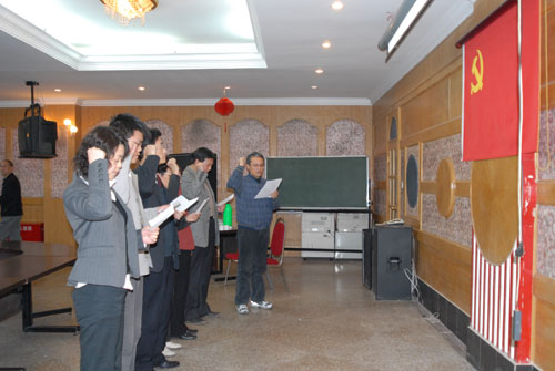 2006年3月22日上午,總編輯、黨委委員王國儀同志主持召開我社全體黨員大會,副社長、紀(jì)委書記陳東明同志講黨課,一批新黨員在黨旗下莊嚴(yán)宣誓。