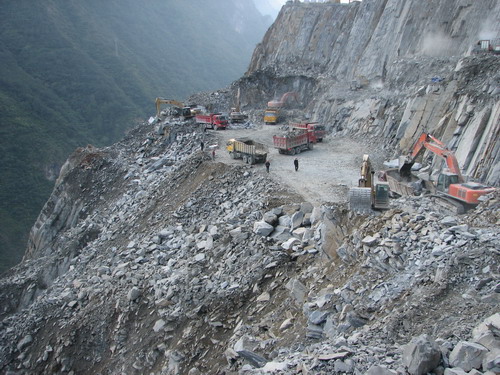 開采后的懸壁要處理,即在巖石中打進鋼筋,再上噴混凝土