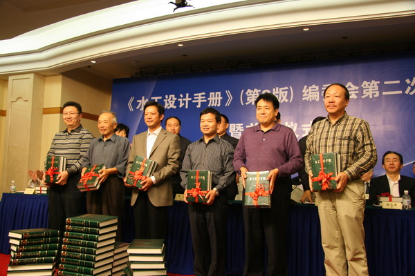 會議向《水工設計手冊》(第2版)三家組織單位——水利部水利水電規劃設計總院、水電水利規劃設計總院和中國水利水電出版社,手冊第1版主編單位河海大學贈送了樣書;向各卷主編代表和總責任編輯贈送了樣書。