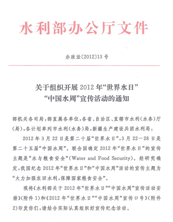水電知識網(wǎng)»資訊»水利要聞»關于組織開展2012年“世界水日”“中國水周”宣傳活動的通知