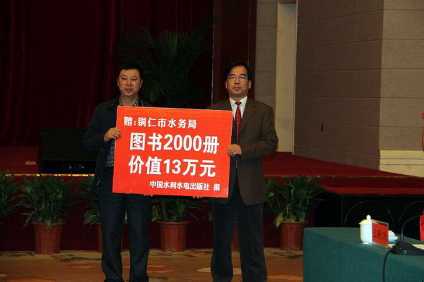 2012年4月21日,中國水利水電出版社向銅仁市捐贈圖書儀式在貴州省銅仁市南長城國際大酒店隆重舉行。我社社長兼黨委書記湯鑫華,貴州省委常委、銅仁市委書記廖國勛出席捐贈儀式并作重要講話。在捐贈儀式上,中國水利水電出版社向銅仁學(xué)院、銅仁職業(yè)技術(shù)學(xué)院兩所高校和銅仁市水務(wù)局捐贈了1萬冊、價值43萬元的圖書。