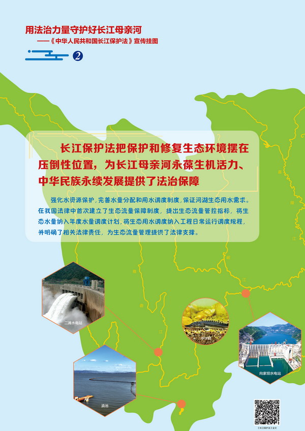 為了深入貫徹《長(zhǎng)江保護(hù)法》,落實(shí)新發(fā)展理念,構(gòu)建新發(fā)展格局,實(shí)現(xiàn)長(zhǎng)江流域科學(xué)、有序、綠色、高質(zhì)量發(fā)展,水利部政策法規(guī)司組織編制了《用法治力量守護(hù)好長(zhǎng)江母親河——<中華人民共和國(guó)長(zhǎng)江保護(hù)法>宣傳掛圖》(共4張),由中國(guó)水利水電出版社有限公司于近期編輯出版。