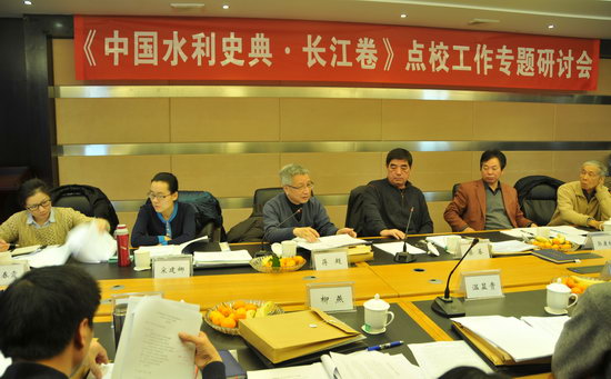 2012年12月21~22日,《中國水利史典 長江卷》點(diǎn)校工作專題研討會在武漢召開。《中國水利史典》專家委員會副主任蔡蕃、蔣超,編委會辦公室成員宋建娜、楊春霞,長江卷編纂辦公室主任別道玉、副主任鐘小珍,卷內(nèi)專家黎沛虹、王昭良、毛振培,湖北大學(xué)古籍研究所點(diǎn)校人員參加會議。