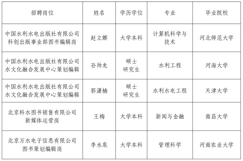 根據水利部公開招聘工作有關規定及我集團2025年度社會公開招聘工作方案,現將擬聘用工作人員予以公示。公示期間如有問題,請向我集團反映。 公示時間:2026年1月