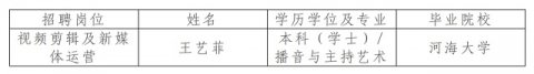 北京中水傳媒文化有限公司根據中國水利水電出版傳媒集團招聘管理辦法和公司招聘實施方案,確定王藝菲為擬聘用人選,現予以公示。公示期間,如有問題,請向我司反映。