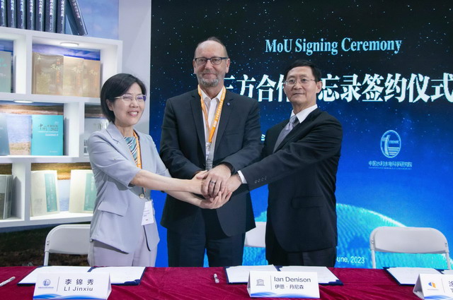6月16日,正值第29屆北京國際圖書博覽會進(jìn)入高潮之際,中國水利水電出版?zhèn)髅郊瘓F(tuán)(CWPPMG)、中國水利水電科學(xué)研究院(IWHR)與聯(lián)合國教科文組織(UNESCO)在北京國際會議中心共同舉辦簽約儀